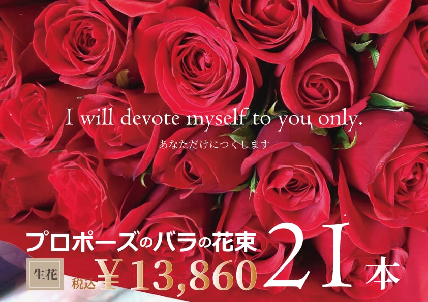 配達専用【 生花の花束21本 】 女性が幸せな気分になれる♪ 永遠の憧れ! プロポーズ用の赤いバラの花束!<オーダー1週間前注文>
