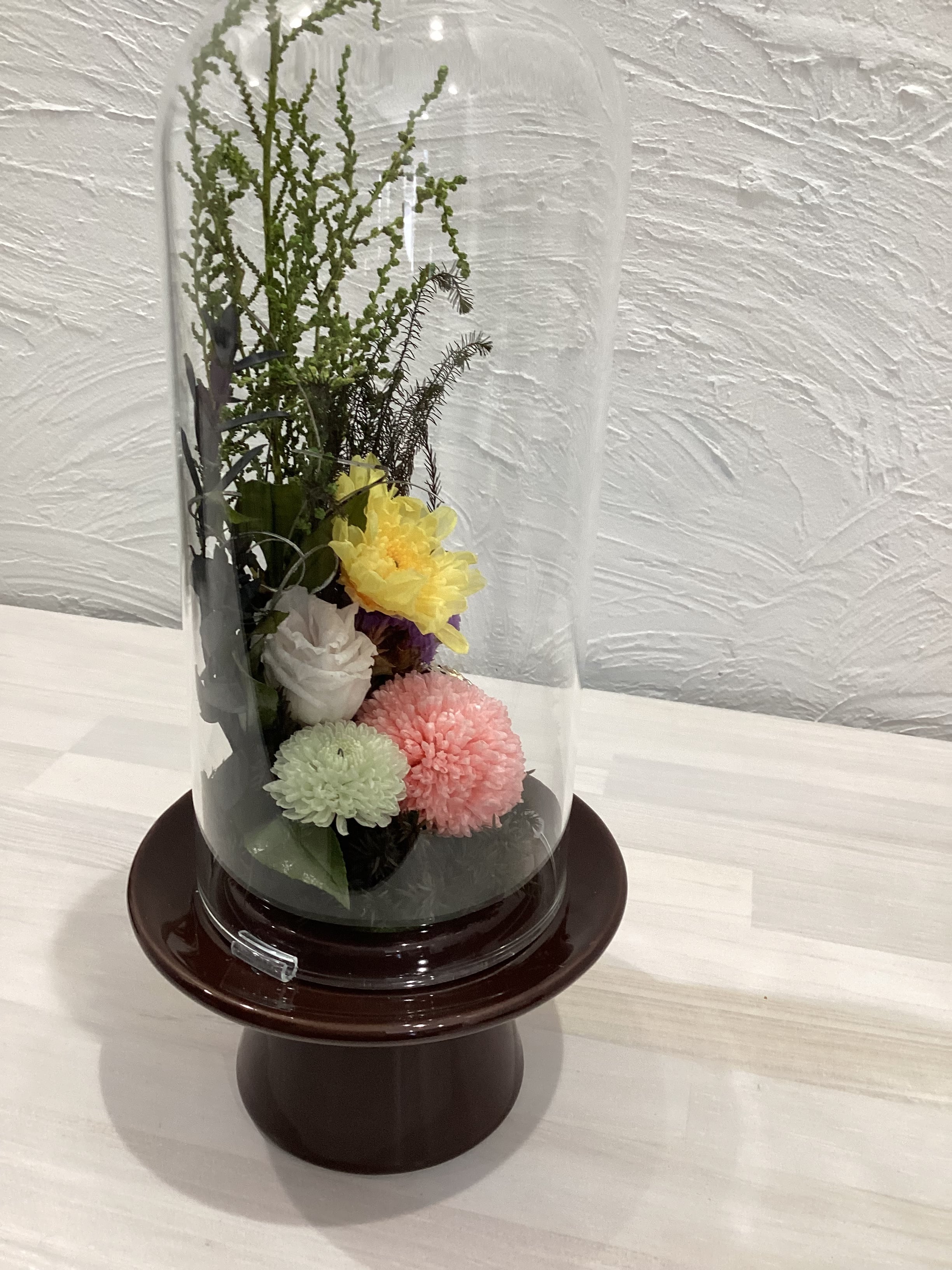 【プリザーブドフラワー】仏花 ガラスドーム型-L 041423-1705
